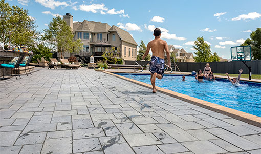 Nothing compares to the experience of basking in the sun in the pool or unwinding poolside after the sun sets. It’s no surprise the best part of your summer lifestyle should be spent next to a cool, refreshing body of water. Thankfully, Unilock has a ton of pool coping ideas that will guarantee your backyard pool deck will make a splash even before you enter the water.